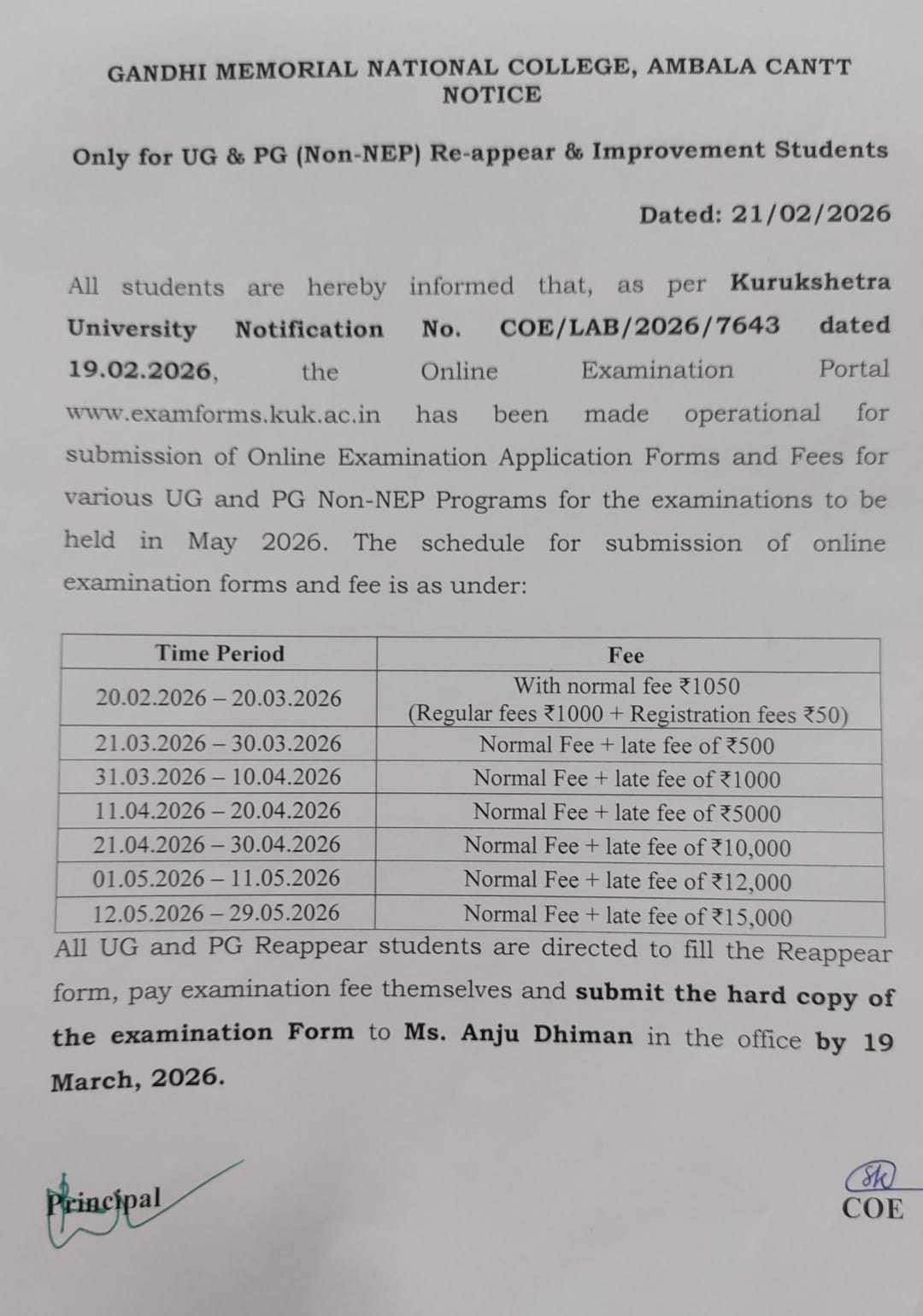 Notice for 2nd Sem (Reappear) Studnets regarding IUMS Poratal Examination Form